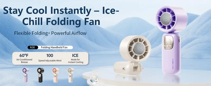 Portable Ice Cooling Handheld Fan 4000mAh Rechargeable, Foldable Fan with LED Display, 3-in-1 Handheld/Neck/Desktop Use, 100-Speed Adjustable, Perfect for Outdoor, Travel, Work, Camping
