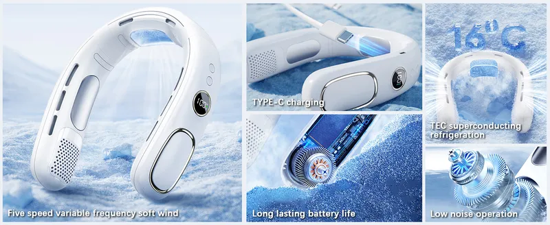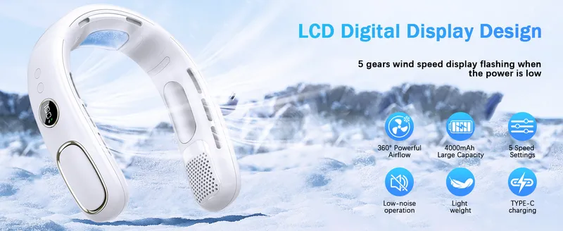Portable Neck Fan, Hands Free Bladeless Fan Personal Neck Fan Rechargeable Cooling Neck Fan 5 Powerful Speeds Strong Wind, Quiet,Wearable Fans Gifts for Women Men Outdoor Travel
